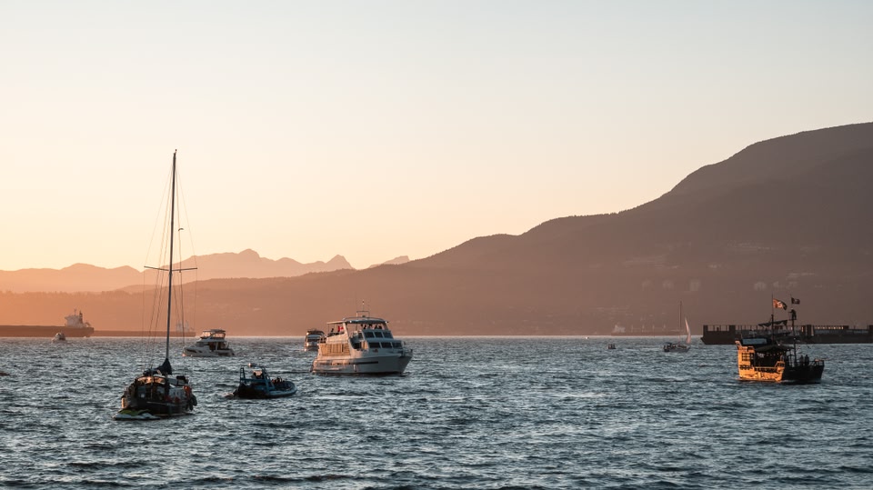 배: 브리티시컬럼비아주 페리는 섬을 오가는 노선을 자주 운영하며 선내 음식 서비스와 라운지를 갖추고 있습니다. 온라인으로 탑승권을 예매할 수 있으며 차를 가져갈 수 있습니다.