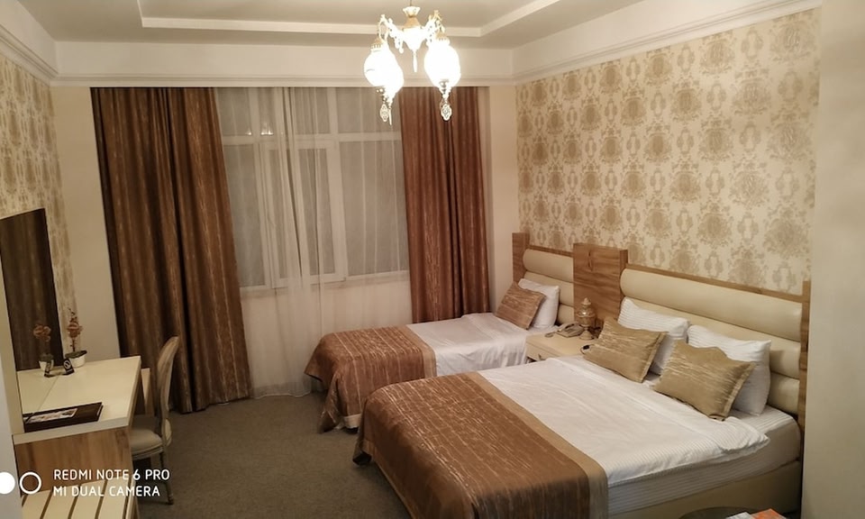 Regardless the reason for visiting Azerbaijan, whether it is for business or pleasure, a 4 stars Bosfor Hotel, located 15 minutes drive from the city center, is always ready to welcome You. Classically-styled rooms feature smart door card locks, separate work area, bathrobe, hairdryer, 26 inch LCD satellite TV, direct phone line, marble hand basin, mini bar, free WiFi Internet access, balcony, safe, centralized heating/cooling system with individual regulator. Azerbaijan and Turkish specialties are served at Hotel Bosfors restaurant, and a varied breakfast buffet is provided every morning. The hotel features a spacious gym and a small indoor pool with sauna. Services also include 24 hour room service, 24 hour concierge. There is also a meeting room and free parking is available nearby.