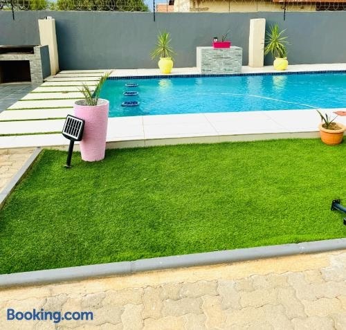 Palapye 내에 위치한 Monaco villa Palapye에서 머물러보세요. 숙소는 야외 수영장, 정원 전망을 제공합니다. 이 홀리데이 홈에서는 취사가 가능하며, 전용 수영장, 정원, 무료 전용 주차장 등을 이용하실 수 있습니다. 에어컨이 제공되는 이 홀리데이 홈에는 침실 2개, 거실, 냉장고, 주전자 등의 시설을 완비한 주방, 샤워 시설, 온수 욕조 등을 구비한 욕실 2개가 마련되어 있습니다 .