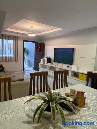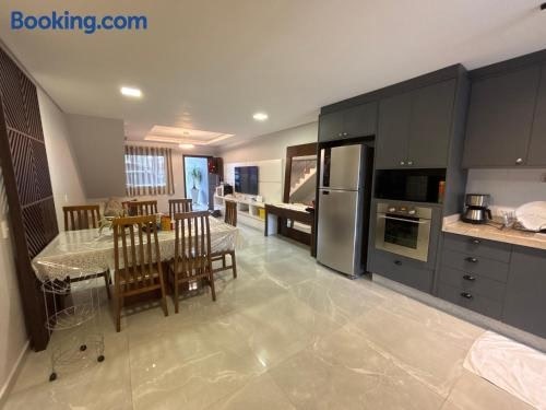 조인빌르 내에 위치한 Casa Joinville에서 머물러보세요. 숙소는 전용 수영장, 수영장 전망을 제공합니다. 숙소는 Joinville Arena에서 5.4km 거리에 있으며, 야외 수영장, 무료 전용 주차장을 갖추고 있습니다. 에어컨이 제공되는 이 홀리데이 홈에는 침실 2개, 거실, 냉장고, 주전자 등의 시설을 완비한 주방, 샤워 시설, 헤어드라이어 등을 구비한 욕실 3개가 마련되어 있습니다 .