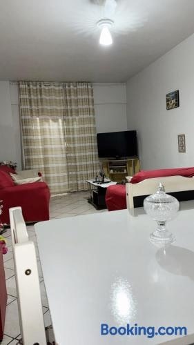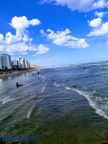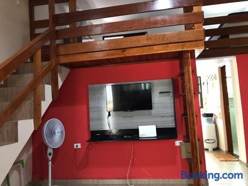 몽가과 내에 자리한 Apartamento no Centro de Mongaguá에서는 무료 Wi-Fi, 산 전망을 제공합니다. 숙소는 센트루 비치에서 단 5분 거리에 있습니다. 투숙객은 무료 전용 주차장을 이용할 수 있으며, 아파트의 주변 지역에서 하이킹, 낚시 등의 레저 활동을 즐길 수 있습니다. 이 아파트에는 침실 2개, 거실, 평면 TV 케이블 채널, 냉장고, 오븐 등을 갖춘 주방, 샤워 시설 등을 구비한 욕실 1개가 마련되어 있습니다 .