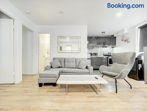 몬트리올 중심부 내 편리한 곳에 위치한 Superbe 2 chambres à Griffintown에서는 다음을 제공합니다: 발코니. 이 아파트에서는 무료 Wi-Fi를 이용하실 수 있습니다. 숙소는 클락 타워 비치에서 2.5km, 벨센터에서 1km 내 거리에 있습니다. 에어컨이 제공되는 이 아파트에는 침실 2개, 평면 TV, 그리고 오븐 등을 갖춘 주방이 마련되어 있습니다.