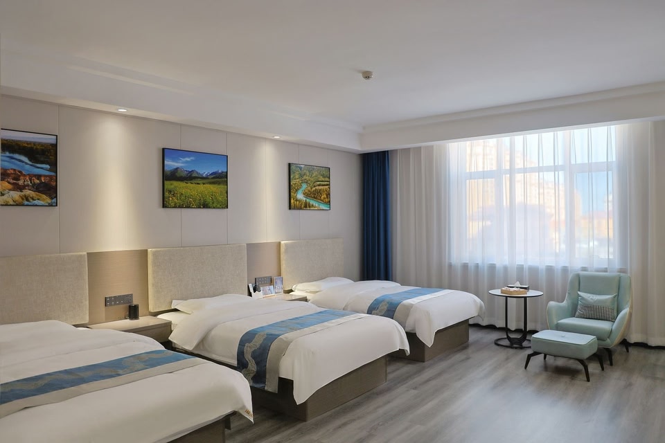 Location Want to take a rest and explore the city? Hotel «Burqin Lanfeng Holiday Hotel» is located in Burqin. This hotel is located 1 km from the city center.At the hotel You can stop by the restaurant. Get ready for a fun and exciting vacation! Here’s what you will find on the premises: a library. Accessible for guests with disabilities: the elevator helps them to go to the highest floors.Room amenities In the room, there is a shower, a TV and slippers. The room equipment depends on its category.