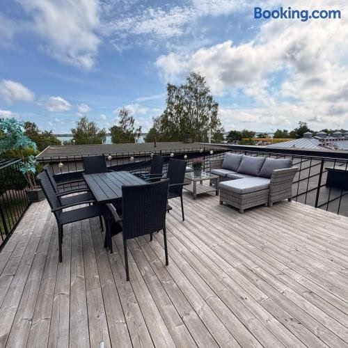 마리에함 내에 위치한 Seaview apartment에서 머물러보시기 바랍니다. 숙소는 스:트 예란스 교회에서 약 12분 거리에 있으며, 바다 전망, 파티오 등을 제공합니다. 숙소는 마리에바드 비치에서 8분 거리에 있으며, 테라스, 무료 전용 주차장을 갖추고 있습니다. 에어컨이 제공되는 이 아파트에는 침실 1개, 거실, 냉장고, 커피 머신 등의 시설을 완비한 간이 주방, 샤워 시설, 무료 세면도구 등을 구비한 욕실 1개가 마련되어 있습니다 .