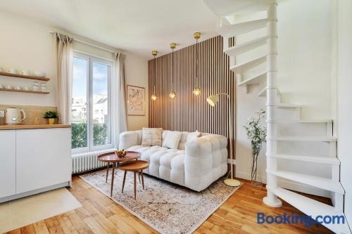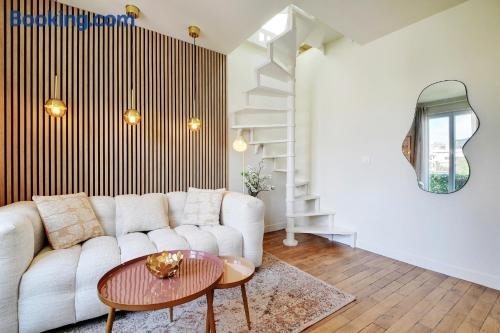 불로뉴비양쿠르 내에 자리한 Cosy Duplex에서는 정원 전망을 제공합니다. 숙소는 파리 베르사유 전시장에서 4.2km, 에펠탑에서 5.9km 거리에 있습니다. 숙소는 파르크 데 프랭스에서 17분 거리에 있으며, 무료 Wi-Fi, 컨시어지 서비스 등을 제공합니다. 이 아파트에는 침실 1개, 평면 TV 케이블 채널, 냉장고, 식기세척기 등의 시설을 구비한 주방, 세탁기, 샤워 시설 등을 갖춘 욕실 1개가 마련되어 있습니다 .