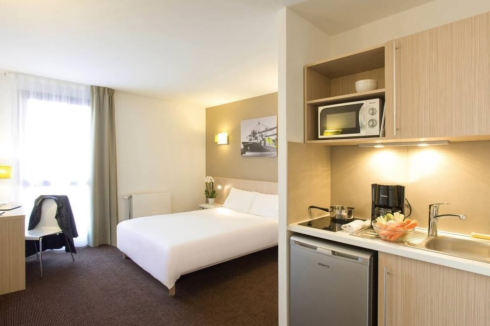 르 아브르에서 컨벤션 센터와 연결에 위치한 아파트호텔 아다지오 액세스 르 아브 레 독에 머무실 경우 10분 정도 걸으면 까헤 데 도크 및 보바 독에 가실 수 있습니다. 이 아파트식 호텔에서 구 옹플뢰르 항구까지는 22.1km 떨어져 있으며, 41.3km 거리에는 도빌 해변도 있습니다. 테라스 및 정원 전망을 감상하고 무료 무선 인터넷 등의 편의 시설/서비스를 이용하실 수 있습니다. 이 아파트식 호텔에는 피크닉 공간 및 자전거 주차도 마련되어 있습니다. 아파트호텔 아다지오 액세스 르 아브 레 독의 숙박 고객을 위해 서비스를 제공하는 스낵바/델리에서는 간단한 식사가 가능합니다. 아침 식사(뷔페)가 주중 07:00 ~ 10:00 및 주말 07:30 ~ 10:30에 유료로 제공됩니다. LOCALIZE 대표적인 편의 시설과 서비스로는 비즈니스 센터, 다국어 구사 가능 직원, 짐 보관 등이 있습니다. 시설 내에서 셀프 주차(요금 별도) 이용이 가능합니다. 111개의 각각 다르게 가구 비치에는 냉장고 및 쿡탑 등이 갖추어진 간이 주방도 있어 편하게 머무실 수 있습니다. 무료 무선 인터넷을 이용하실 수 있으며 위성 채널 프로그램 시청이 가능한 34인치 평면 TV가 구비되어 있어 지루하지 않게 시간을 보내실 수 있습니다. 편의 시설/서비스로는 책상, 전자레인지 등은 물론, 무료 국제 전화 서비스가 지원되는 전화도 있습니다.