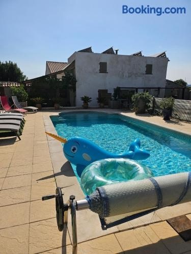 Vendémian 내에 위치한 Duplex piscine calme에서 머물러보세요. 숙소에는 무료 Wi-Fi, 산 전망, 계절에 따라 운영되는 야외 수영장, 정원, 테라스 등이 구비되어 있습니다. 이 숙소에는 전용 수영장, 무료 전용 주차장이 마련되어 있습니다. 이 홀리데이 홈에는 침실 1개, 거실, 냉장고, 커피 머신 등의 시설을 완비한 간이 주방, 샤 워 시설, 무료 세면도구 등을 구비한 욕실 1개가 마련되어 있습니다 .