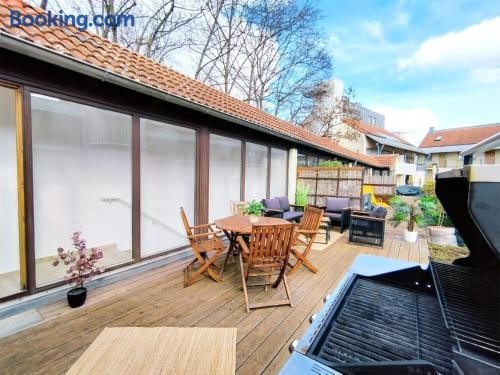 In the Nordstadt district of Nürnberg, close to Old Town Nuremberg, Design-Apartment für bis zu 4 im 1 OG, modern, Dachterrasse, Grill, ruhige Lage, Disney plus, Wii, LAN und WLAN has barbecue facilities and a washing machine.