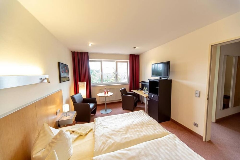 When you stay at Hotel Rügenblick in Stralsund, you'll be near the beach, within a 10-minute walk of HELIOS Klinikum Stralsund Hanseatic and Stralsund Beach. This hotel is 1.2 mi (2 km) from American Bowling Stralsund and 1.8 mi (2.8 km) from Theater Stralsund. Take in the views from a terrace and a garden and make use of amenities such as complimentary wireless internet access. This hotel also features a picnic area and a banquet hall. Enjoy a meal at Restaurant Sundblick, or stay in and take advantage of the hotel's room service. Buffet breakfasts are available daily from 6:30 AM to 10:00 AM for a fee. Featured amenities include luggage storage, a safe deposit box at the front desk, and an elevator. Self parking (subject to charges) is available onsite. Stay in one of 44 guestrooms featuring flat-screen televisions. Cable television is provided for your entertainment. Bathrooms have showers and hair dryers. Conveniences include desks, and housekeeping is provided daily.