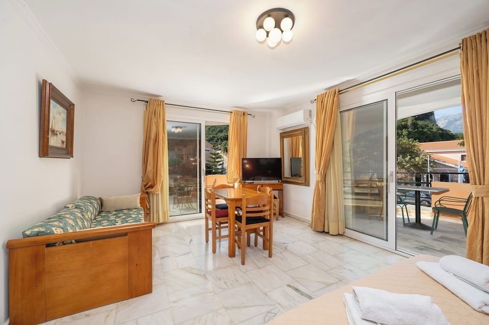 케팔로니아에서 해변 근처에 위치한 오디세이 팰리스에 머무실 경우 5분 정도 걸으면 이오니아 해 및 중앙 광장 해변에 가실 수 있습니다. 이 게스트하우스에서 라기아 비치까지는 0.6km 떨어져 있으며, 2.4km 거리에는 미케네이아 툼도 있습니다. 테라스 전망을 감상하고 무료 무선 인터넷 및 TV(공용 구역) 등의 편의 시설/서비스를 이용하실 수 있습니다. 이 게스트하우스에는 이 밖에도 투어/티켓 안내 및 자전거 보관도 마련되어 있습니다. 오디세이 팰리스의 숙박 고객을 위해 서비스를 제공하는 odysseus에서 맛있는 식사를 즐겨보세요. 스낵바/델리도 있어 편리하게 이용하실 수 있습니다. 바/라운지에서는 음료를 마시며 하루를 여유롭게 마무리하실 수 있어요. 아침 식사(주문 요리)를 매일 07:00 ~ 10:00에 유료로 이용하실 수 있습니다. 대표적인 편의 시설과 서비스로는 드라이클리닝/세탁 서비스, 짐 보관, 엘리베이터 등이 있습니다. 시설 내에서 무료 셀프 주차 이용이 가능합니다. 12개 객실에는 냉장고 및 쿡탑 등이 갖추어진 간이 주방도 있어 편하게 머무실 수 있습니다. 객실에 딸린 전용 가구가 딸린 발코니에서 전망을 감상하실 수 있습니다. 무료 무선 인터넷을 이용하실 수 있으며 평면 TV가 구비되어 있어 지루하지 않게 시간을 보내실 수 있습니다. 편의 시설/서비스로는 금고 및 책상 등이 있으며 객실 정돈 서비스는 매일 제공됩니다.