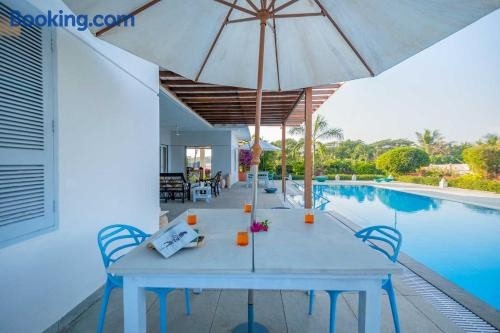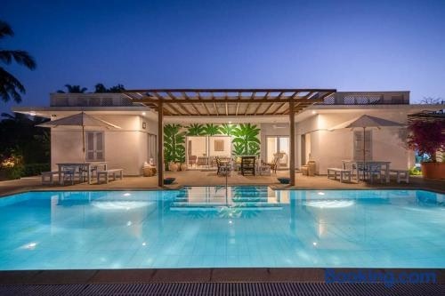 알리바그 내에 자리한 Whispering Palms by StayVista - Pool-view villa with Boutique interiors, Terrace & Lawn에서는 무료 Wi-Fi, 정원 전망을 제공합니다. 이 빌라에서는 취사가 가능하며, 전용 수영장, 정원, 무료 전용 주차장 등을 이용하실 수 있습니다. 에어컨이 제공되는 이 빌라에는 별도의 침실 3개, 헤어드라이어 등을 갖춘 욕실 4개, 휴식 공간이 마련되어 있습니다 .