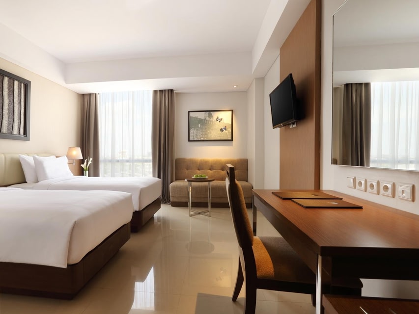 베카시에 위치한 산티카 프레미어 코타 하라빤 인다의 경우 차로 15분 이내 거리에 슈마레콘 말 베카시 및 트란세라 워터파크 베카시 등이 있습니다. 이 가족 여행에 좋은 호텔에서 자카르타 국제 엑스포까지는 23km 떨어져 있으며, 23.9km 거리에는 탐린 쇼핑몰도 있습니다. 마사지 및 얼굴 트리트먼트 서비스를 받을 수 있는 풀서비스 스파에서 느긋한 시간을 즐기실 수 있습니다. 헬스클럽, 야외 수영장, 워터슬라이드 등의 레크리에이션 시설을 십분 활용하시기 바랍니다. 이 호텔에는 이 밖에도 무료 무선 인터넷 및 콘시어지 서비스도 마련되어 있습니다. 시설 내에 위치한 레스토랑 Gendis에서 점심 식사, 저녁 식사를 즐겨보세요. 이곳은 세계 요리를 맛볼 수 있는 곳으로 유명하죠. 또는 편하게 객실에서 24시간 룸서비스를 이용하실 수 있습니다. 바/라운지에서는 음료를 마시며 하루를 여유롭게 마무리하실 수 있어요. 아침 식사(뷔페)가 매일 06:00 ~ 10:00에 무료로 제공됩니다. 대표적인 편의 시설과 서비스로는 비즈니스 센터, 드라이클리닝/세탁 서비스, 24시간 운영되는 프런트 데스크 등이 있습니다. 시설 내에서 무료 주차 대행 이용이 가능합니다. 에어컨이 설치된 152개의 객실에는 LED TV도 갖추어져 있어 편하게 머무실 수 있습니다. 무료 무선 인터넷을 이용하실 수 있으며 케이블 채널 프로그램도 구비되어 있어 지루하지 않게 시간을 보내실 수 있습니다. 전용 욕실에는 헤어드라이어 및 슬리퍼도 갖추어져 있습니다. 편의 시설/서비스로는 금고 및 책상 등이 있으며 객실 정돈 서비스는 매일 제공됩니다.