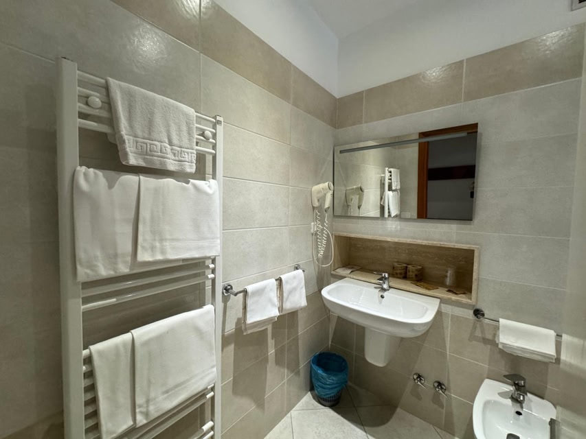 로카라소에서 골프장 옆에 위치한 호텔 홀리데이즈에 숙박하실 경우 차로 15분 정도 이동하면 로카라소-아레모냐 스키 리조트 및 Roccaraso역에 가실 수 있습니다. 이 골프 호텔에서 Rivisondoli Pescocostanzo역까지는 3.4km 떨어져 있으며, 4.2km 거리에는 세지오비아 크레테 로세도 있습니다. 정원 전망을 감상하고 무료 무선 인터넷 및 콘시어지 서비스 등의 편의 시설/서비스를 이용하실 수 있습니다. 이 호텔에는 아케이드/게임룸, 스키 보관 시설 및 볼룸도 편의 시설/서비스로 마련되어 있습니다. 스키 셔틀(요금 별도)을 이용하여 스키장으로 단숨에 가실 수 있습니다. 호텔에 있는 레스토랑에 들러 점심 식사, 저녁 식사를 즐겨보세요. 이용 가능한 또 다른 다이닝 옵션으로는 커피숍/카페 및 룸서비스(이용 시간 제한) 등이 있습니다. 바/라운지에서는 좋아하는 음료를 마시며 갈증을 해소하실 수 있어요. 아침 식사(뷔페)가 매일 07:30 ~ 09:30에 무료로 제공됩니다. 대표적인 편의 시설과 서비스로는 24시간 운영되는 프런트 데스크, 짐 보관, 프런트 데스크의 귀중품 보관함 등이 있습니다. 시설 내에서 무료 셀프 주차 이용이 가능합니다. 평면 TV 시청이 가능한 57개 객실이 마련되어 있습니다. 무료 무선 인터넷을 이용하실 수 있으며 디지털 채널 프로그램도 구비되어 있어 지루하지 않게 시간을 보내실 수 있습니다. 샤워 시설을 갖춘 전용 욕실에는 무료 세면용품 및 헤어드라이어도 마련되어 있습니다. 편의 시설/서비스로는 전화 및 책상 등이 있으며 객실 정돈 서비스는 매일 제공됩니다.