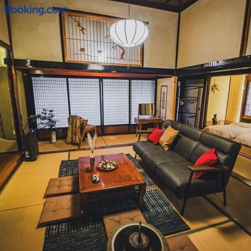 사도 내에 위치한 佐渡島 築120年の古民家一棟貸切 河崎浪漫館 囲炉裏体験 檜風呂-蔵サウナ完備에서 머물러보세요. 이 빌라에서는 무료 전용 주차장, 컨시어지 서비스, 무료 Wi-Fi를 이용하실 수 있습니다. 에어컨이 제공되는 이 빌라에는 평면 TV, 냉장고 등의 시설을 완비한 주방, 휴식 공간, 비데, 샤워 시설, 온수 욕조, 욕조 등을 갖춘 욕실 2개도 마련되어 있습니다 .