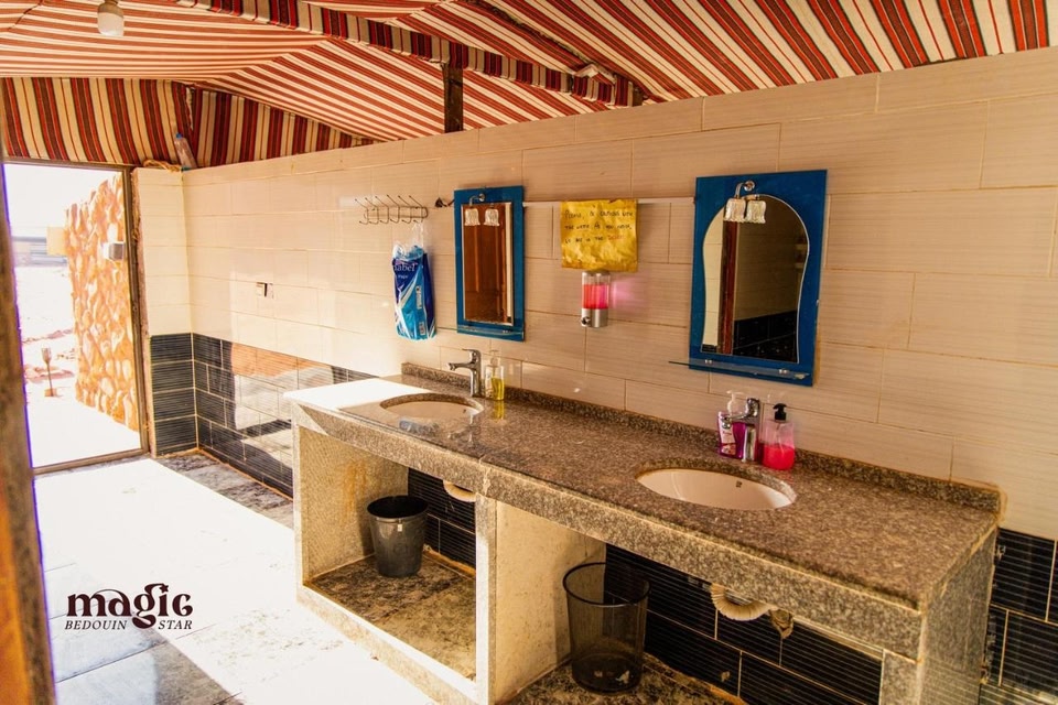 와디럼에 위치한 매직 베두인 스타 - 캠핑사이트에 머무르면 산속 입지에서 와디 럼 보호구역에서 가까우며 로렌스의 샘까지 차량으로 1분이면 이동할 수 있습니다. 이 스키 캠핑장에서 와디 룸 관광안내소까지는 7.4km 떨어져 있으며, 22.1km 거리에는 디세 날리지 스테이션도 있습니다. 테라스 전망을 감상하고 무료 무선 인터넷 및 콘시어지 서비스 등의 편의 시설/서비스를 이용하실 수 있습니다. 이 캠핑장에는 이 밖에도 피크닉 공간 및 바비큐 그릴도 마련되어 있습니다. 매직 베두인 스타 - 캠핑사이트에 있는 레스토랑에서 만족스러운 식사를 즐겨보세요. 아침 식사(뷔페)가 매일 07:00 ~ 09:00에 무료로 제공됩니다. 대표적인 편의 시설과 서비스로는 다국어 구사 가능 직원, 짐 보관, 프런트 데스크의 귀중품 보관함 등이 있습니다. 시설 내에서 무료 셀프 주차 이용이 가능합니다. 15개의 각각 다른 스타일의 인테리어에서 편하게 머무실 수 있습니다. 무료 무선 인터넷을 이용하실 수 있습니다. 샤워 시설을 갖춘 욕실이 마련되어 있습니다. 편의 시설/서비스로는 별도의 좌석 공간 및 무료 생수 등이 있으며 객실 정돈 서비스는 매일 제공됩니다.