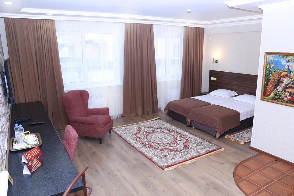 알마티에 자리한 Rabat Hotel의 숙소에서는 바 등의 시설을 이용하실 수 있습니다. 숙소는 Abay Opera House에서 3.1km, Almaty Central Stadium에서 3.2km 거리에 있습니다. 숙소는 Gvardeytsev-Panfilovtsev Park에서 약 3.5km, Kasteev State Museum of Arts에서 3.5km, 알바티 2 기차역에서 3.8km 거리에 있습니다. Ascension Cathedral에서 3.3km 거리에 있는 이 숙소에서는 항알레르기 이용이 가능합니다. 모든 객실에는 에어컨, 케이블 채널을 갖춘 평면 TV, 냉장고, 주전자, 욕조, 무료 세면도구, 책상 등이 완비되어 있습니다. Rabat Hotel의 객실에는 헤어드라이어 등을 갖춘 전용 욕실 및 무료 Wi-Fi도 마련되어 있습니다. 일부 객실에는 발코니가 딸려 있습니다. 숙박 옵션에는 옷장 등이 포함되어 있습니다. 영어, 러시아어, 터키어 구사가 가능한 리셉션 직원이 투숙객의 여행 계획을 도와드립니다. 숙소에서 3.8km 거리에는 Raiymbek Batyr Metro Station, 4.2km 거리에는 Almaty Central Mosque 등의 명소가 있습니다. 알마티 국제공항은 17km 거리에 있습니다.