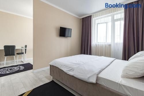 아스타나 내에 위치한 Korkem 4-910 Триумфальная Арка에서 머물러보시기 바랍니다. 숙소는 엑스포 2017 아스타나에서 약 3km 거리에 있으며, 도시 전망, 공용 라운지, 발코니 등을 제공합니다. 숙소는 바이테레크 기념탑에서 3.4km 거리에 있으며, 공용 주방 등을 제공합니다. 이 아파트에는 침실 1개, 냉장고, 오븐 등을 완비한 주방, 평면 TV, 휴식 공간, 샤워 시설 등을 갖춘 욕실 1개가 마련되어 있습니다.