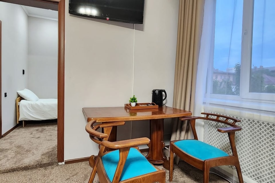 비슈케크에서 기차역/지하철역과 연결에 위치한 DA 컴플렉스의 경우 차로 5분 거리에는 마나스 광장, 5분 거리에는 비슈케크 파크 쇼핑 센터 등이 있습니다. 이 호텔에서 판필로브 공원까지는 5km 떨어져 있으며, 5.2km 거리에는 알라투 스퀘어도 있습니다. 정원 전망을 감상하고 무료 무선 인터넷 등의 편의 시설/서비스를 이용하실 수 있습니다. 대표적인 편의 시설과 서비스로는 24시간 운영되는 프런트 데스크, 세탁 시설, 공용 구역의 전자레인지 등이 있습니다. 시설 내에서 무료 셀프 주차 이용이 가능합니다. 에어컨이 설치된 13개의 객실에는 평면 TV도 갖추어져 있어 편하게 머무실 수 있습니다. 무료 무선 인터넷을 이용하실 수 있으며 케이블 채널 프로그램도 구비되어 있어 지루하지 않게 시간을 보내실 수 있습니다. 욕실에는 샤워 및 헤어드라이어도 마련되어 있습니다. 편의 시설/서비스로는 책상 등이 있으며 객실 정돈 서비스는 매일 제공됩니다.