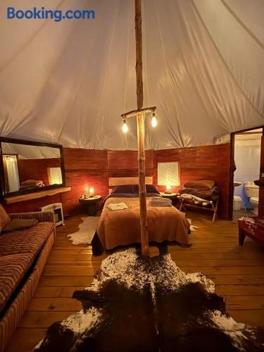 Ferrería de Tula 내에 위치한 Exclusivo glamping en el bosque에서 머물러보세요. 숙소는 무료 Wi-Fi, 산 전망을 갖춘 객실을 제공하며, 투숙객은 테라스 등이 마련된 정원을 이용할 수 있습니다. 샤워 시설, 무료 세면도구 등의 시설을 완비한 전용 욕실이 제공됩니다. 과달라하라 공항은 97km 거리에 있습니다.