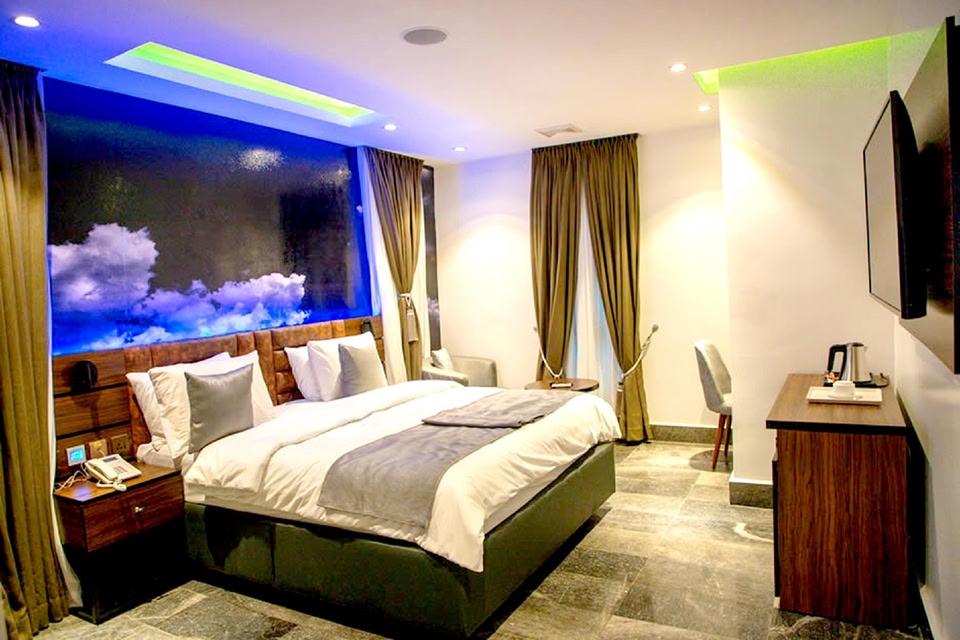 우요에 자리한 Merzino Palace - Uyo에서는 5성급 객실과 야외 수영장, 바 등의 시설을 이용하실 수 있습니다. 레스토랑에서 아프리카식 요리를 즐길 수 있으며, 무료 전용 주차장을 이용하실 수 있습니다. 모든 객실에는 에어컨, 케이블 채널을 갖춘 평면 TV, 냉장고, 주전자, 샤워 시설, 무료 세면도구, 책상 등이 완비되어 있습니다. Merzino Palace - Uyo의 일부 객실에는 안전 금고가 구비되어 있으며, 각 객실에는 욕조 등을 갖춘 전용 욕실이 마련되어 있습니다. 모든 숙박 옵션에는 옷장 등이 포함되어 있습니다. 숙소의 24시간 프런트 데스크 직원이 유용한 정보를 제공해드립니다. 아콰이봄 공항은 27km 거리에 있습니다.