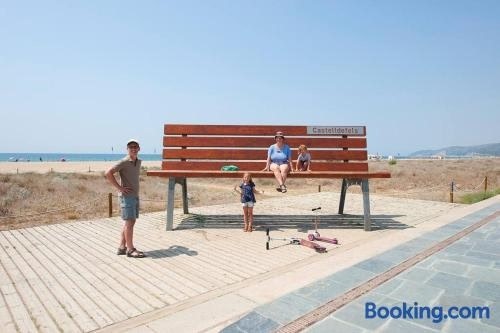 카스텔데펠스 내 해변에 위치한 Beach vibes in Castelldefels에서는 전용 수영장을 이용하실 수 있습니다. 에어컨이 제공되는 이 숙소는 카스테데펠스 비치에서 2분 거리에 있으며, 투숙객은 무료 Wi-Fi, 구내 전용 주차장 등을 이용할 수 있습니다. 이 아파트에는 침실 1개, 냉장고, 오븐 등을 완비한 주방, 평면 TV, 휴식 공간, 샤워 시설 등을 갖춘 욕실 2개가 마련되어 있습니다.