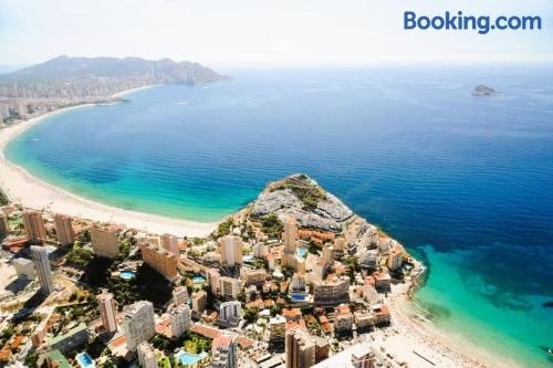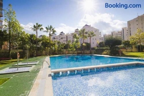 베니도름 내에 위치한 Cala Esmeralda Apartament에서 머물러보시기 바랍니다. 이 숙소는 전용 수영장, 발코니, 정원 전망을 제공합니다. 이 아파트에는 수영장 전망, 수영장, 정원을 비롯해 무료 Wi-Fi도 구비되어 있습니다. 에어컨이 제공되는 이 아파트에는 침실 2개, 거실, 냉장고 등의 시설을 완비한 주방, 비데, 헤어드라이어 등을 구비한 욕실 2개가 마련되어 있습니다 . 평면 TV가 비치되어 있습니다.