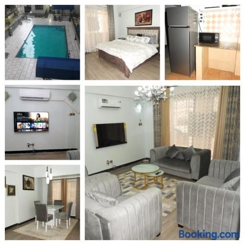다르에스살람 내에 위치한 MJ Hosting에서 머물러보세요. 숙소에는 전용 수영장, 무료 Wi-Fi가 마련되어 있습니다. 이 아파트 유형의 숙소는 Village Museum에서 2km, National Museum and House of Culture에서 4km 거리에 있습니다. 에어컨이 제공되는 이 아파트에는 발코니, 침실 3개, 각종 시설을 완비한 주방이 마련되어 있습니다. 평면 TV 등을 갖추고 있습니다. MJ Hosting에서 7.