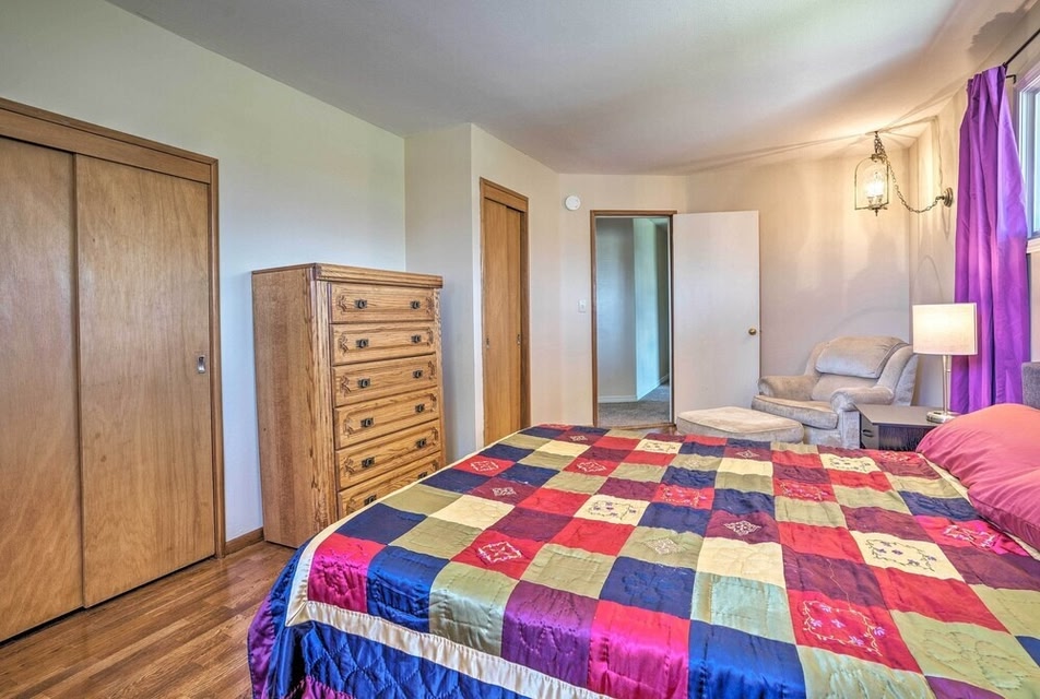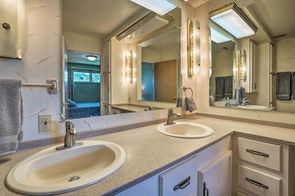 모세 레이크 내에 위치한 Lake House with Hot Tub - 1 Mi to Surf n Slide에서 머물러보세요. 이 홀리데이 홈에 머무는 투숙객은 무료 Wi-Fi를 이용할 수 있습니다. 에어컨이 제공되는 이 홀리데이 홈에는 침실 5개, 거실, 냉장고, 커피 머신 등의 시설을 완비한 주방, 온수 욕조, 무료 세면도구 등을 구비한 욕실 4개가 마련되어 있습니다 . 이 홀리데이 홈에는 수건, 침대 린넨 등이 구비되어 있습니다.